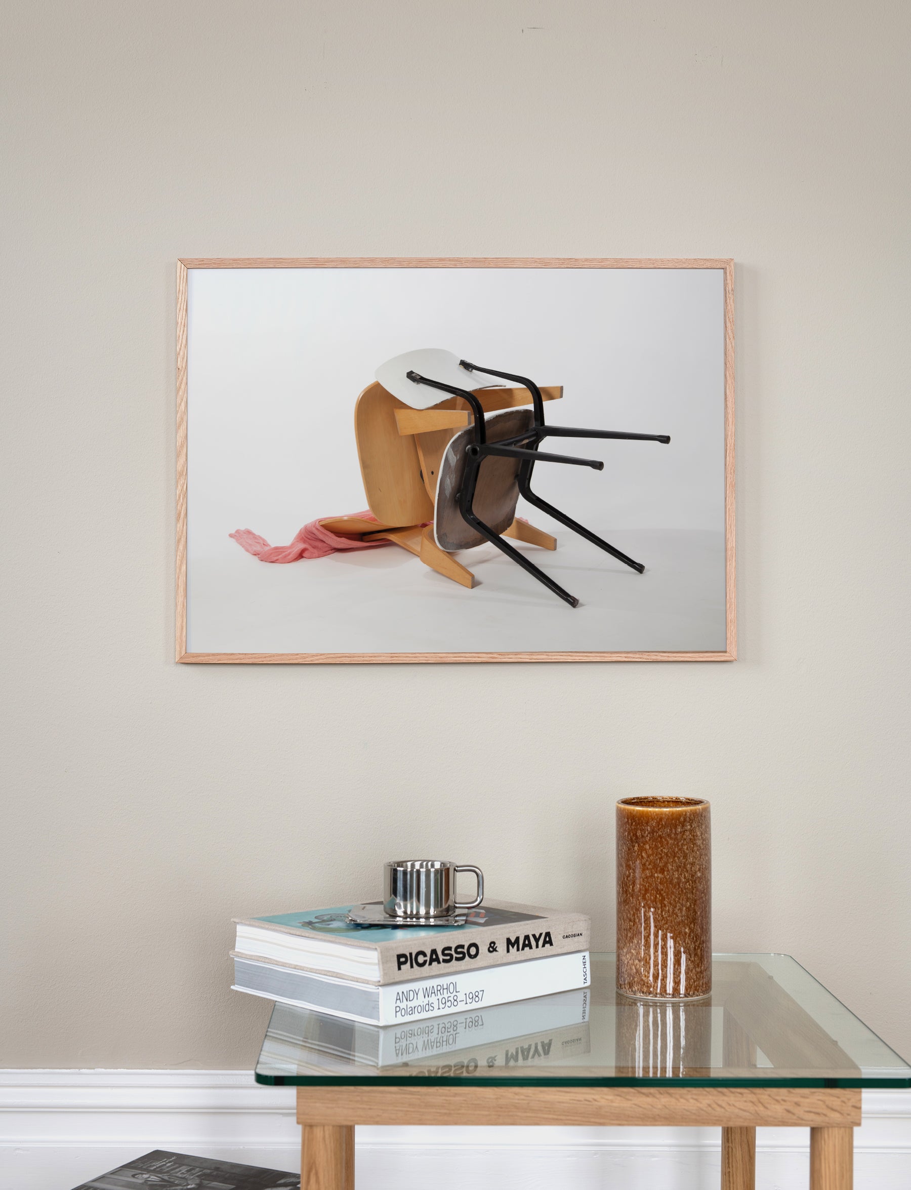 Photographic print from the “Chair Affair” series by Margriet Craens and Lucas Maassen. In this body of work, chairs are staged in ways reminiscent of couples caught in compromising positions, suggesting desire and character beyond function. Also a couple in life, the artists extend their reflections on intimacy to the objects around them – sitting as a physical pleasure, where thighs shift, hands caress, and bodies lean. First exhibited in 2015 as part of “The Vincent Affair” at Huis Nune Ville and later published in the book “Chair Affair” (Onomatopee), the series explores the intimate world of everyday objects.