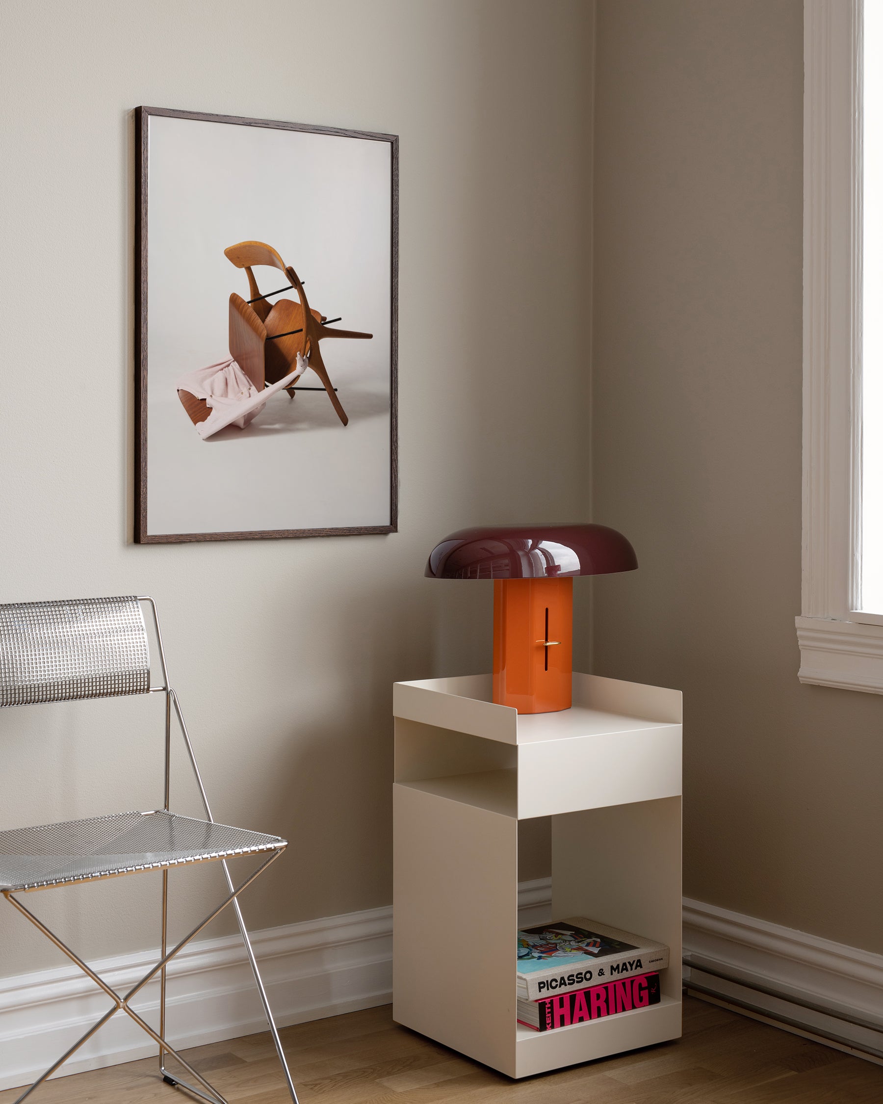 Photographic print from the “Chair Affair” series by Margriet Craens and Lucas Maassen. In this body of work, chairs are staged in ways reminiscent of couples caught in compromising positions, suggesting desire and character beyond function. Also a couple in life, the artists extend their reflections on intimacy to the objects around them – sitting as a physical pleasure, where thighs shift, hands caress, and bodies lean. First exhibited in 2015 as part of “The Vincent Affair” at Huis Nune Ville and later published in the book “Chair Affair” (Onomatopee), the series explores the intimate world of everyday objects.