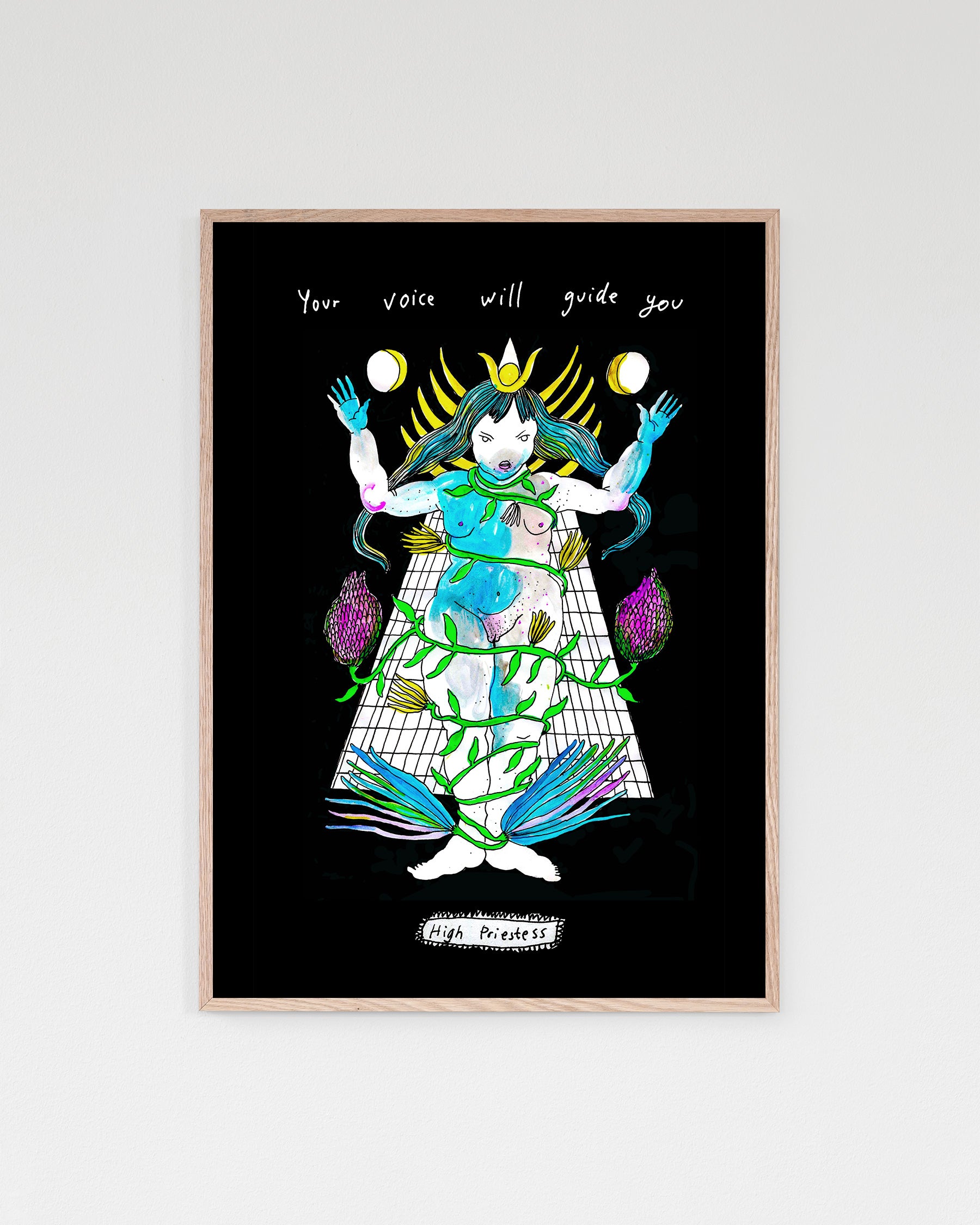 Print based on an original drawing from Outgrow Yourself Oracle and Tarot by Linda Spåman – her third tarot deck, created as a tool for self-growth and unlocking inner potential. Combining playfulness with depth, the series uses botanical motifs to guide everyday decisions and invite self-discovery.