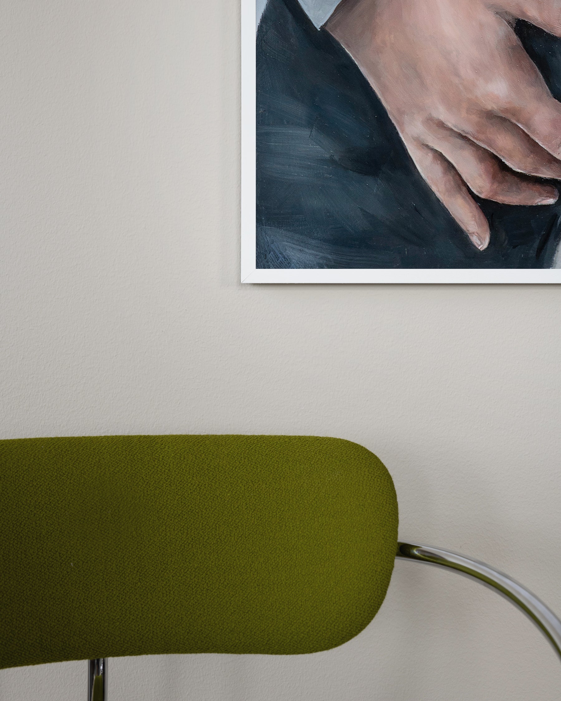 Oil on canvas. A study of intimacy and ambiguity, from a series of cropped motifs exploring how the focus of certain details can shift our view.