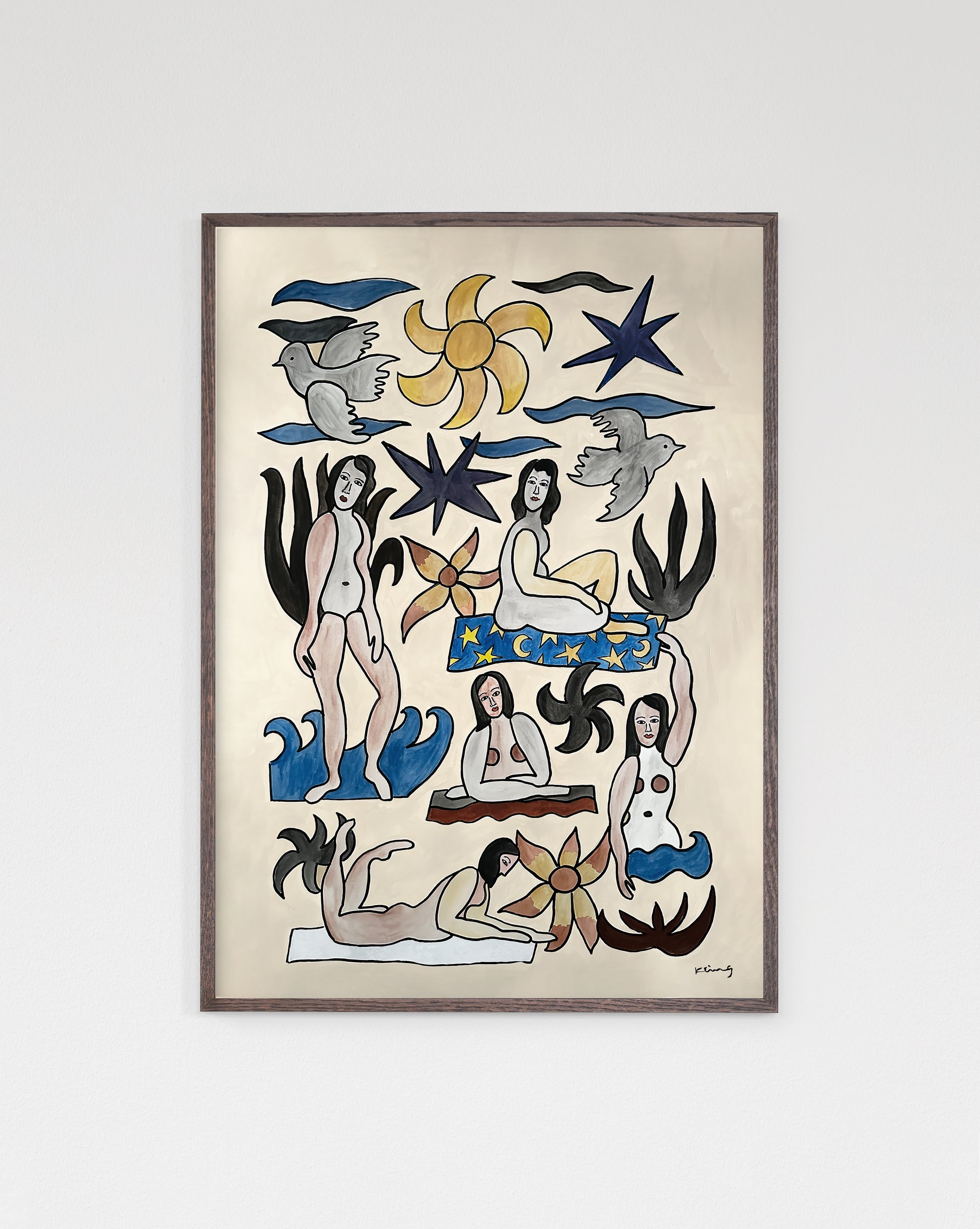 Inspired by Miró and the Mediterranean seaside. Acrylic and watercolour on paper.