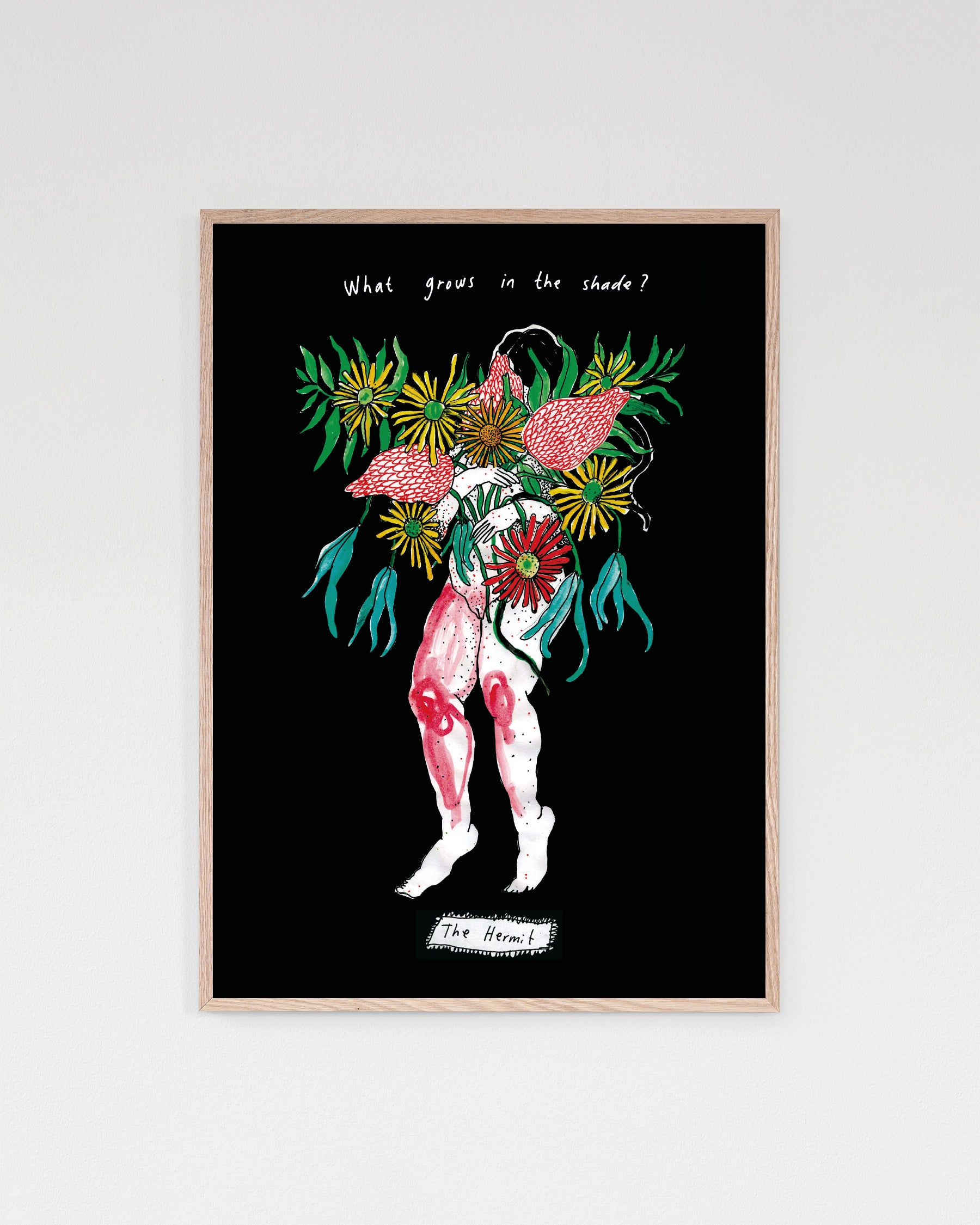 Print based on an original drawing from Outgrow Yourself Oracle and Tarot by Linda Spåman – her third tarot deck, created as a tool for self-growth and unlocking inner potential. Combining playfulness with depth, the series uses botanical motifs to guide everyday decisions and invite self-discovery.