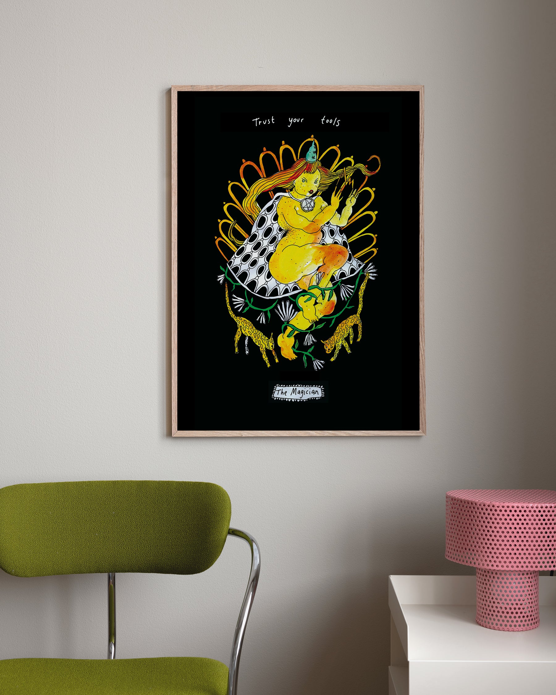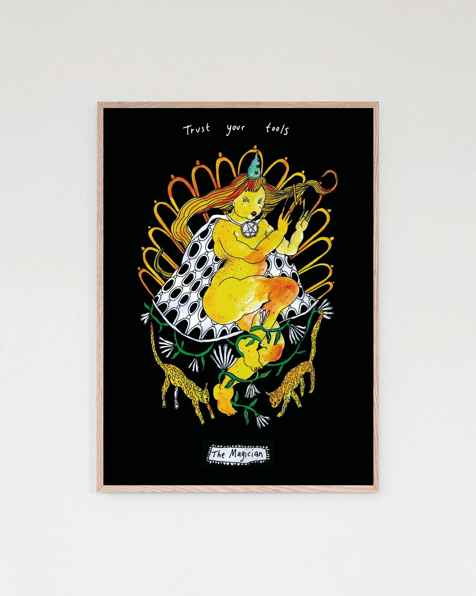 Print based on an original drawing from Outgrow Yourself Oracle and Tarot by Linda Spåman – her third tarot deck, created as a tool for self-growth and unlocking inner potential. Combining playfulness with depth, the series uses botanical motifs to guide everyday decisions and invite self-discovery.