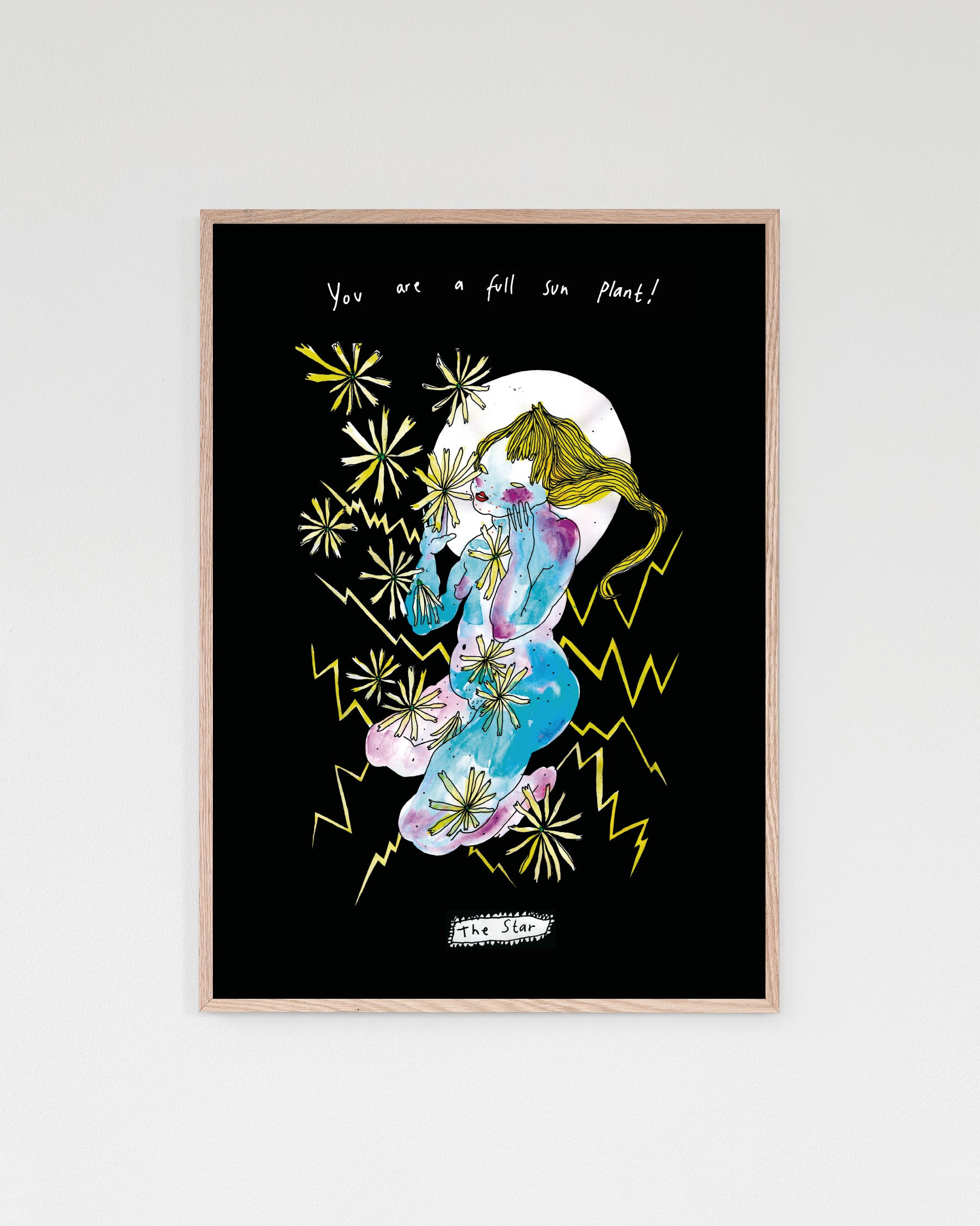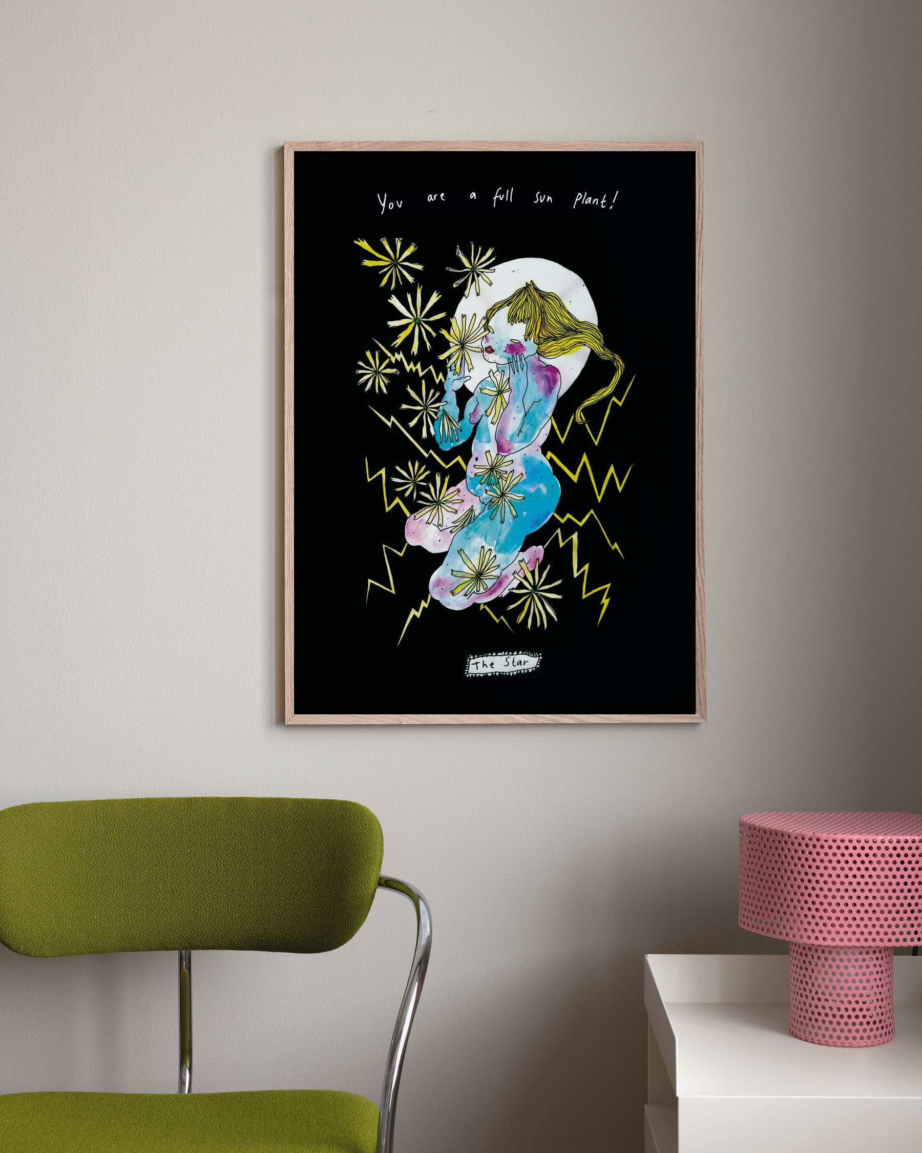 Print based on an original drawing from Outgrow Yourself Oracle and Tarot by Linda Spåman – her third tarot deck, created as a tool for self-growth and unlocking inner potential. Combining playfulness with depth, the series uses botanical motifs to guide everyday decisions and invite self-discovery.